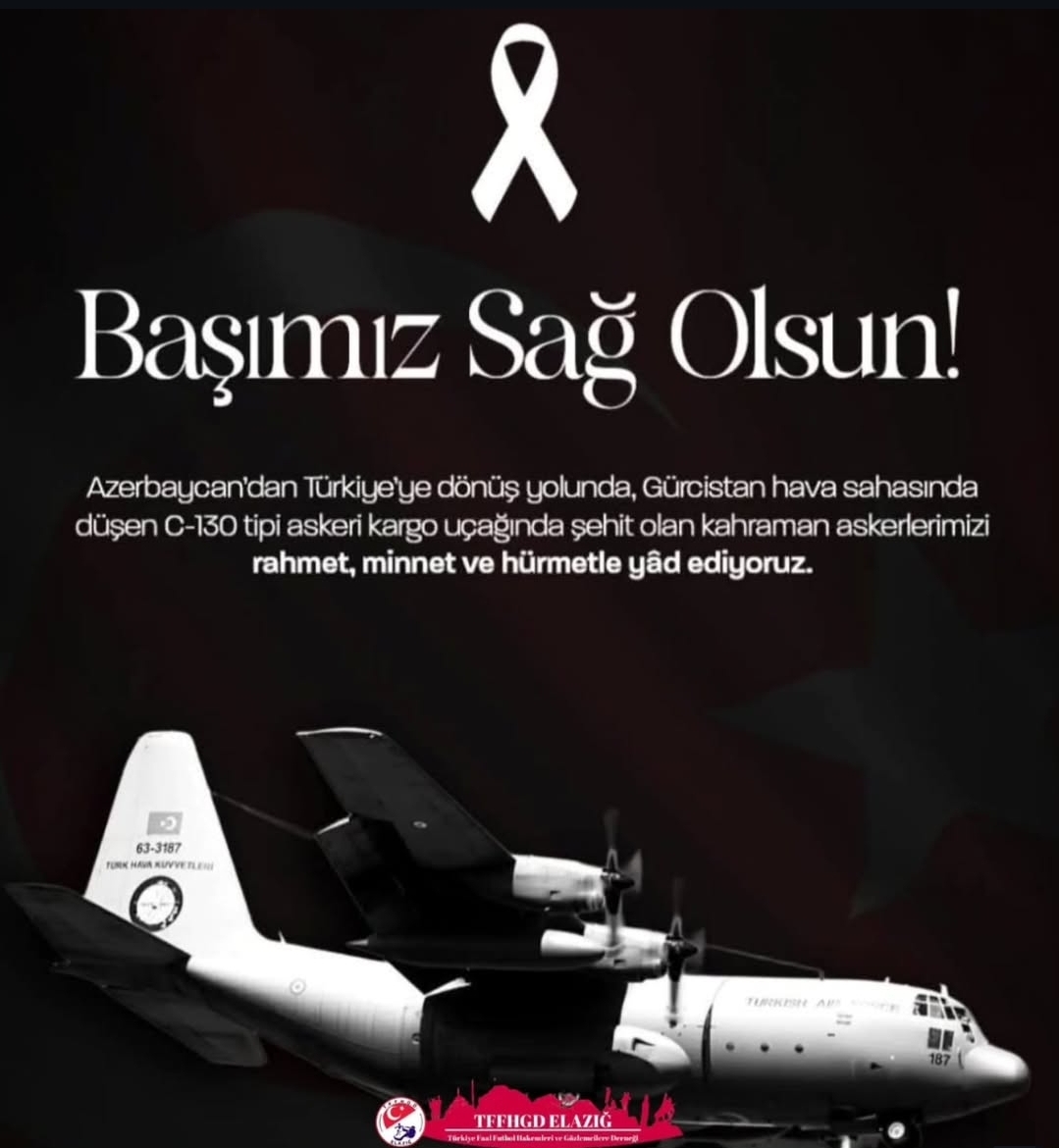 Aziz milletimizin başı sağ olsun.Askerî kargo uçağının düşmesi sonucu şehit olan kahraman askerlerimize Allah’tan rahmet; ailelerine ve yakınlarına başsağlığı diliyoruz. TFFHGD ELAZIĞ ŞUBESİYönetim Kurulu Adına Şube Başkanı Alper KAYMAZ İlgili Previous Post Büyük Önderimiz Mustafa Kemal ATATÜRK’ü Saygıyla Anıyoruz Next Post T.F.F. ELAZIĞ İLİ 12-14 ARALIK 2025 TARİHLERİ ARASI FUTBOL MÜSABAKALARI