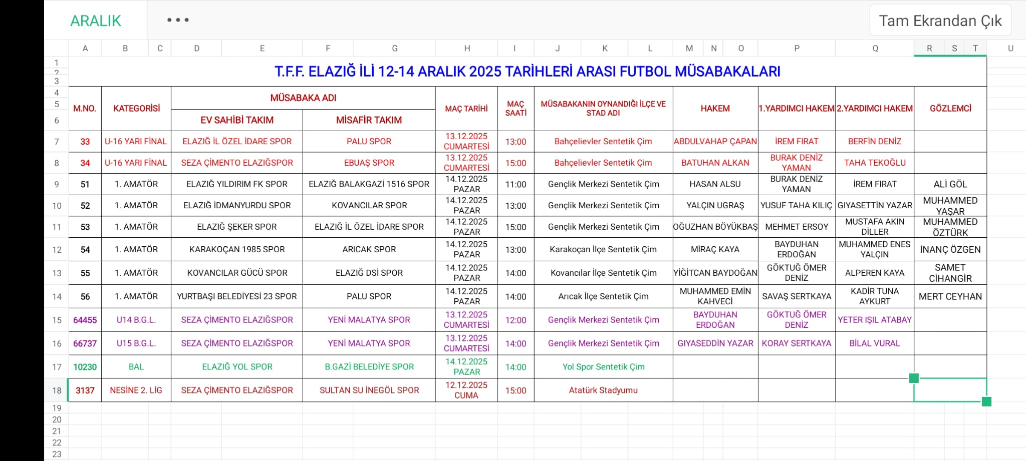 ELAZIĞ İL HAKEM KURULU ELAZIĞ TFFHGD ŞUBESİ
