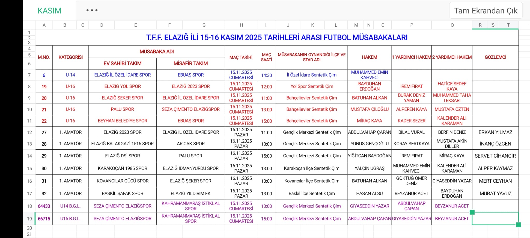 ELAZIĞ İL HAKEM KURULU ELAZIĞ TFFHGD ŞUBESİ