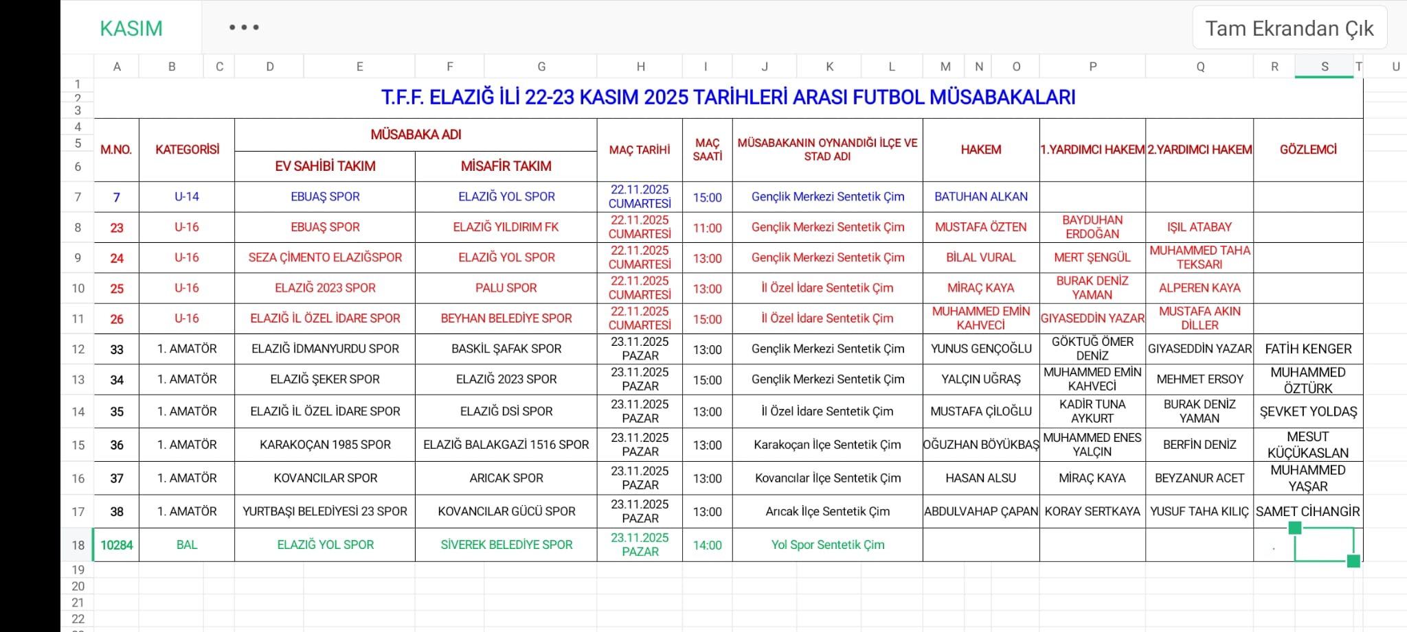ELAZIĞ İL HAKEM KURULU ELAZIĞ TFFHGD ŞUBESİ