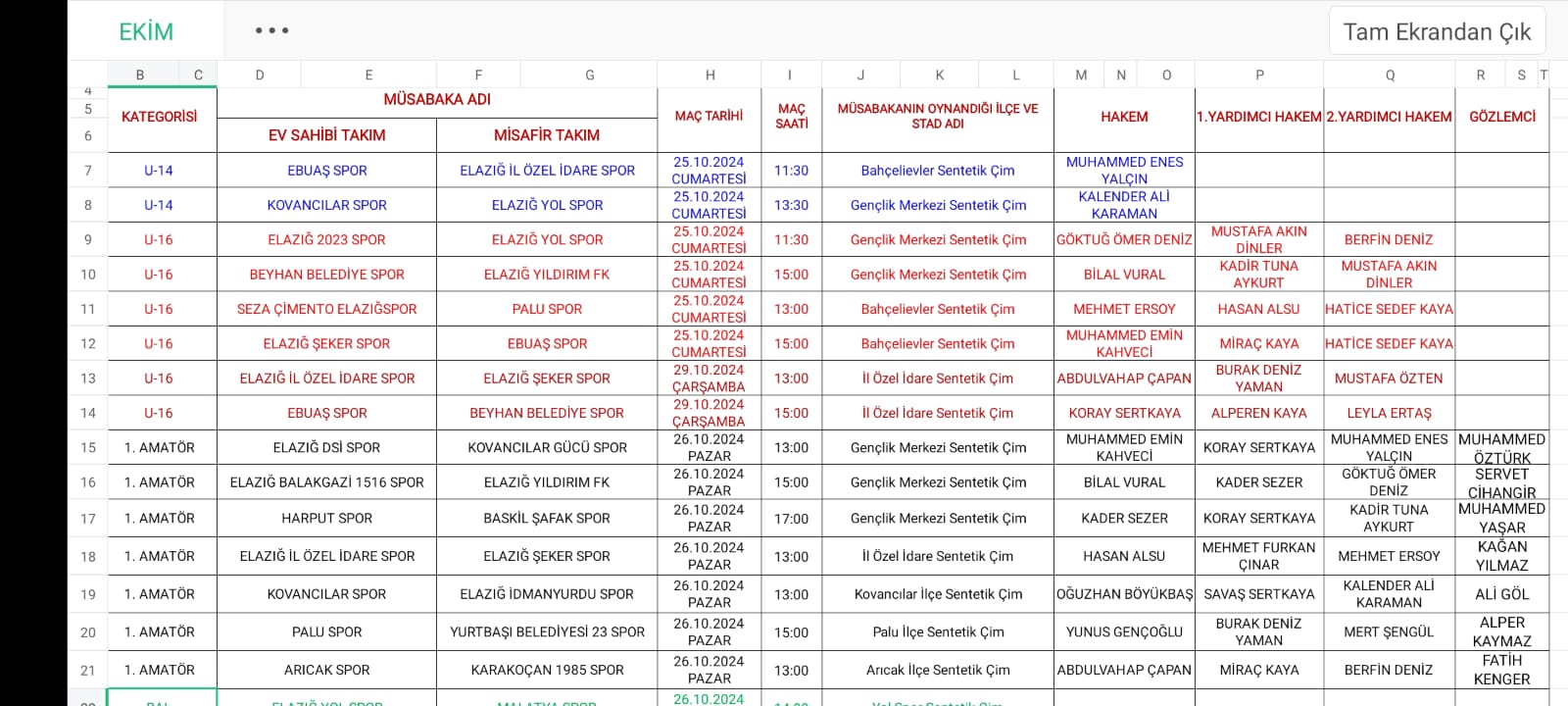 ELAZIĞ İL HAKEM KURULU ELAZIĞ TFFHGD ŞUBESİ
